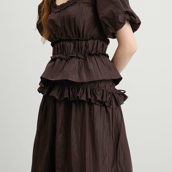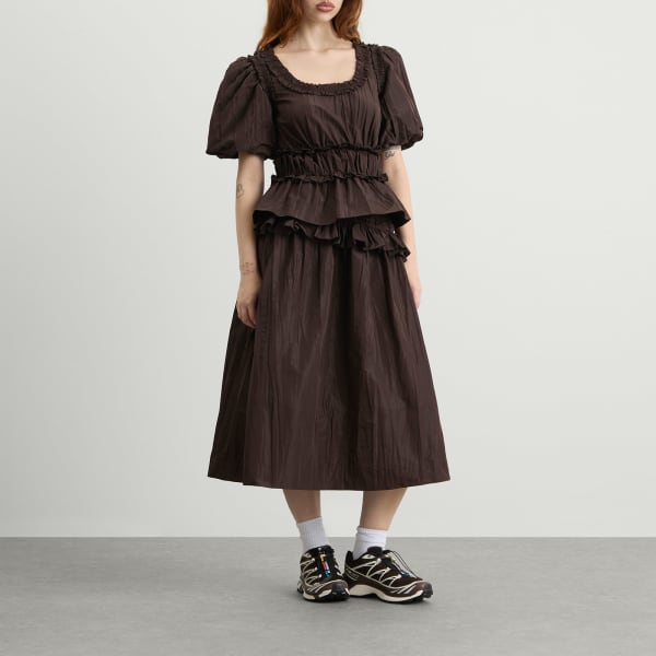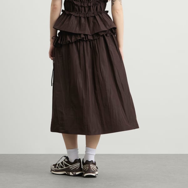 В юбке-миди Flavia от Damson Madder, входящей в капсульную коллекцию «Cocktail Gorpcore», сочетаются игривая женственность и уличный стиль END. Представленная в эксклюзивном шоколадном цвете, эта юбка с струящимся силуэтом и насыщенным оттенком сочетает в себе повседневную элегантность и практичность - она идеально подходит как для повседневных, так и для более нарядных образов, из сезона в сезон.