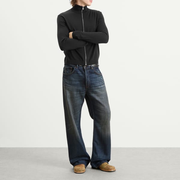 Изысканный базовый элемент гардероба, джемпер Acne Studios Kungo из мериносовой шерсти с застежкой-молнией, сочетает в себе строгие линии и приятную на ощупь текстуру. Изготовленный из тонкой мериносовой шерсти в рубчик, он имеет стандартный крой, длину до бедра и облегающий воротник-стойку для создания скульптурного силуэта. Небольшой вышитый бантик сзади добавляет игривый акцент, завершая образ.