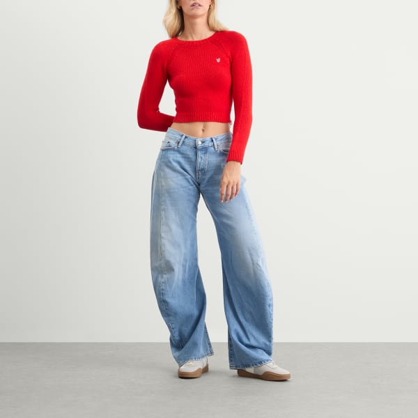 Этот свитер от Acne Studios, сочетающий в себе пропорции и текстуру, отличается чистым и уютным дизайном. Ребристая вязка облегает фигуру, а укороченная длина создает четкий силуэт. Контрастный вышитый логотип в виде сердца добавляет мягкий, но узнаваемый штрих - тонкий, графичный и безошибочно узнаваемый как Acne.