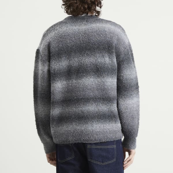 FrizmWORKS выводит текстуру и оттенки на первый план в этом уютном трикотаже, созданном из градиентной букле-пряжи, плавно переходящей по всей поверхности ткани. Уникальная конструкция обеспечивает приятные тактильные ощущения, отличая его от стандартных трикотажных изделий. Полусвободный силуэт сочетает в себе легкость и изысканность, воплощая фирменное сочетание практичности и культурных нюансов бренда.