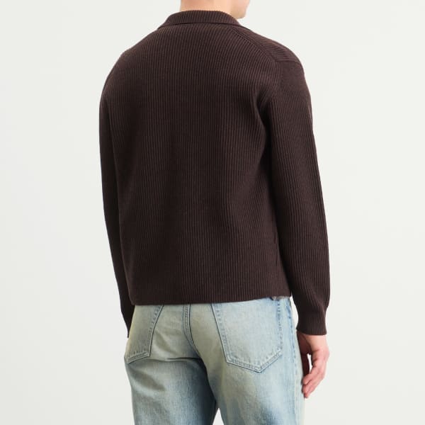 Кардиган в рубчик от Auralee изготовлен из ультратонкой шерсти Super 160, спряденной в камвольную пряжу и связанной до максимальной плотности. В результате получается ребристая ткань с блестящим сиянием, мягкой на ощупь и достаточно плотной. Плотные петли подчеркивают богатство шерсти, сочетая роскошь с повседневной универсальностью.