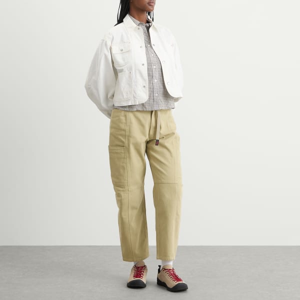 Новая интерпретация культовой модели бренда, брюки Gramicci Voyager изготовлены из хлопковой саржи. Слегка зауженные и укороченные штанины, множество карманов позволяют надежно хранить необходимые вещи.