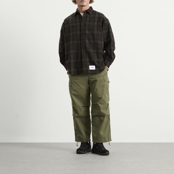 WTAPS воплощает военную точность в повседневной жизни с этими брюками-карго, сшитыми из прочной смеси нейлона и хлопка. Просторный силуэт дополнен регулируемыми шнурками по низу и большими накладными карманами, обеспечивая как функциональность, так и стиль. Усиленная строчка и эффект потертости придают им немного поношенный вид, а ненавязчивый логотип делает их сдержанными.