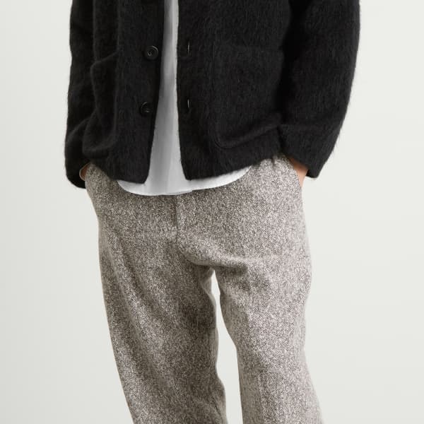 NN07 - это копенгагенский бренд, известный своими изысканными базовыми вещами и глобальным подходом к дизайну. Брюки Paw с узором «елочка» отражают эту философию в форме и ткани. Они имеют свободный прямой крой и изготовлены из плотной переработанной итальянской букле с ворсистой отделкой и изысканным узором «елочка». Детали покроя придают им элегантный вид, а фактурная конструкция - глубину и характер.