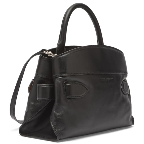 Маленькая сумка Dakota от Marc Jacobs - это изысканная повседневная элегантность, выполненная из гладкой кожи со структурированным силуэтом, который одновременно современен и вневременен. Внутри она отделана мягким фаем - плотной, слегка блестящей тканью, известной своей прочностью и мягкой драпировкой, что придает интерьеру сдержанную роскошь. Фирменный ремень Marc Jacobs обвивает внешнюю часть, словно элемент костюма, вдохновленный фурнитурой, добавляя скульптурный акцент, отсылающий к игривому подходу бренда к классическим дизайнерским решениям.