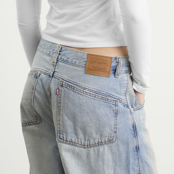 Супер-широкие джинсы Levi's в форме бочки максимально раскрывают этот преувеличенный силуэт, добавляя объем и создавая смелый, уличный вариант тренда на джинсы в форме бочки. С ультраширокими штанинами и эффектным изгибом от бедра до низа, они отсылают к архивным скейтбордистским и рейв-мотивам, оставаясь при этом верными наследию джинсовой моды Levi's. Выцветшие и слегка потертые участки добавляют текстуру, делая их выдающимся выбором для тех, кто предпочитает максималистский стиль в джинсах.
