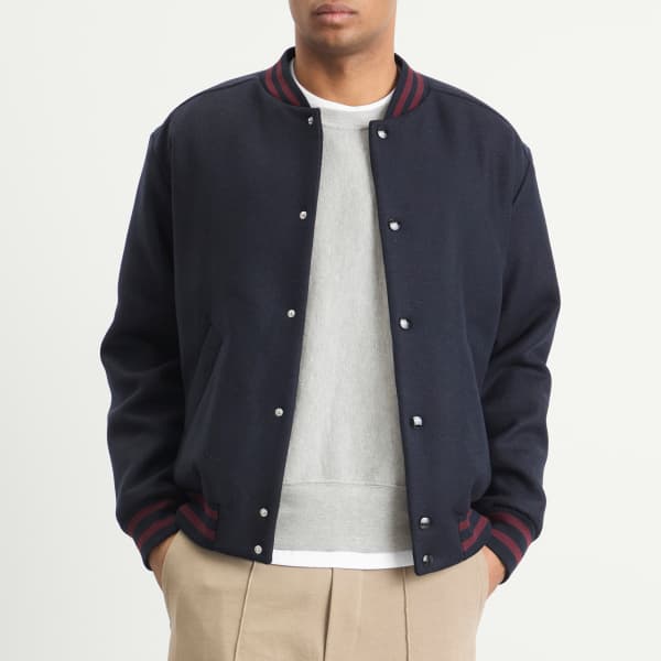 Эта университетская куртка от парижского люксового бренда APC сочетает в себе стиль студенческой одежды и минималистичный дизайн. Изготовленная из шерстяной смеси, она украшена логотипом в тон на груди, который добавляет нотку ретро-стиля в повседневную одежду.
