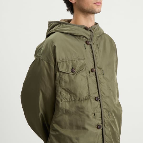 Эта стильная парка от Visvim поможет вам согреться в холодную погоду. Она изготовлена из нейлона саржевого переплетения. Поврежденная отделка придает ей готический стиль, а наполнитель из гусиного пуха обеспечивает оптимальную теплоизоляцию. Накладной карман расположен высоко на груди, что повышает практичность куртки.