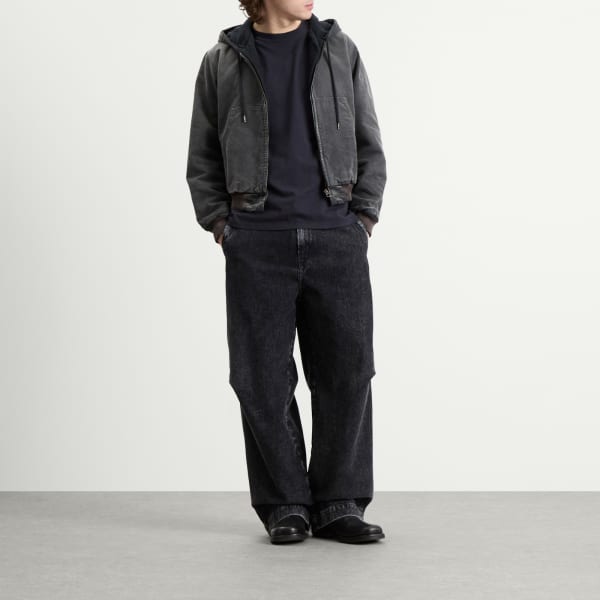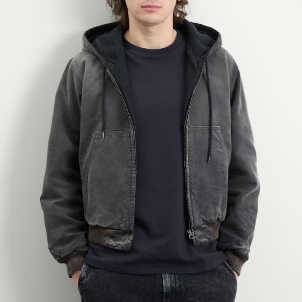 Стеганая куртка Auralee сшита из плотной органической хлопчатобумажной ткани, сотканной для прочности и жесткости. Ткань окрашена в выцветший черный цвет и обработана вручную, что придает ей винтажную текстуру, уникальную для каждого изделия. Со временем ткань смягчается и приобретает свой характер, делая эту куртку долговечной вещью с постоянно меняющейся глубиной.
