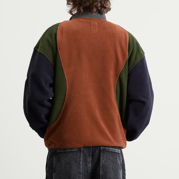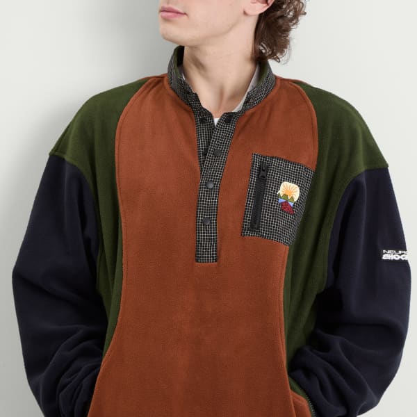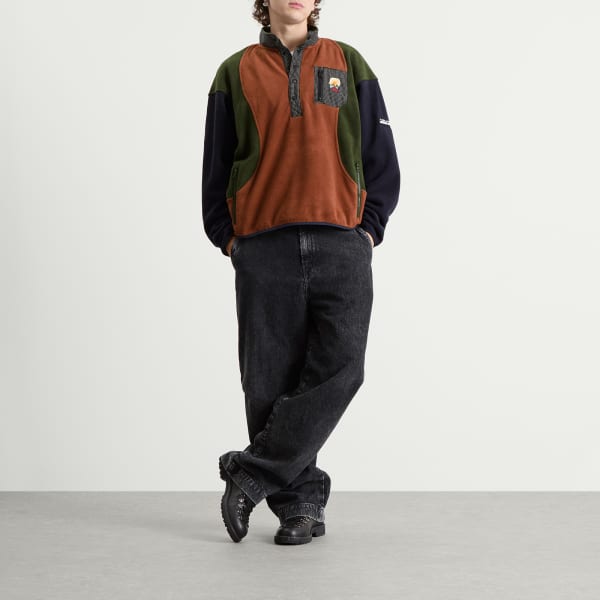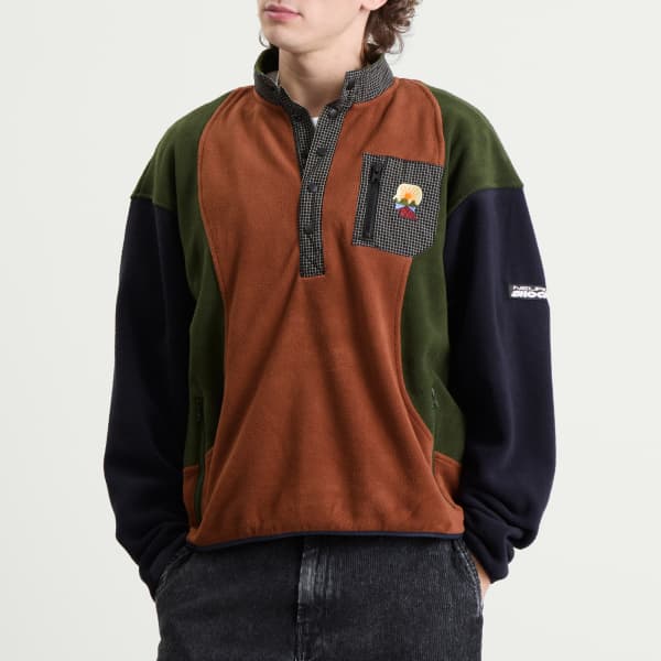 Флисовая куртка-пуловер Equipment от Brain Dead выделяется смелым сочетанием цветов, клетчатой отделкой и нашивкой с изображением солнца над горами на груди - она сильно отличается от стандартных флисовых курток для активного отдыха. Верная философии бренда, она сочетает в себе практичность и игривый, неожиданный дизайн, становясь ярким элементом гардероба для тех, кто ценит индивидуальность и креативные детали.