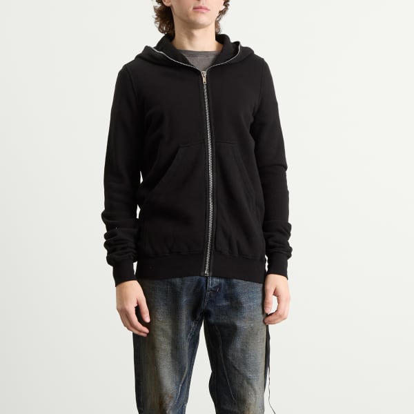 Эта толстовка Rick Owens, выполненная в фирменном готическом стиле, минималистична и одновременно готична. Изготовленная из плотного хлопка, она нарушает привычные дизайнерские решения, поскольку молния проходит через весь капюшон.