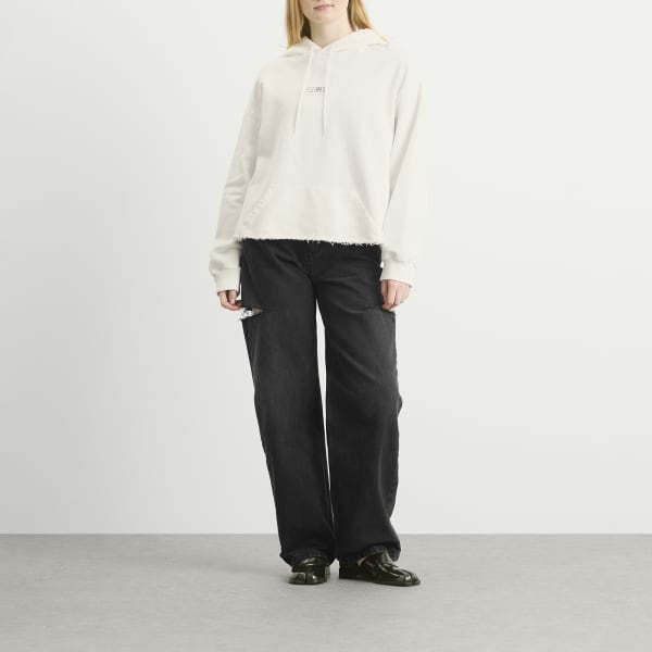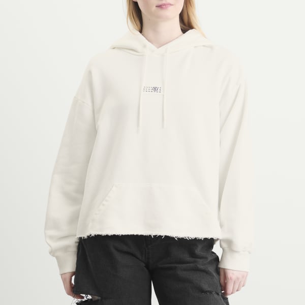 Свободная, но изысканная толстовка с капюшоном от MM6 Maison Margiela выполнена из хлопкового трикотажа с необработанным краем для придания стиля. Спущенные плечи и карман-кенгуру обеспечивают комфорт, а цифровой логотип на груди и фирменная белая строчка на спине подчеркивают ее неповторимый стиль Margiela.