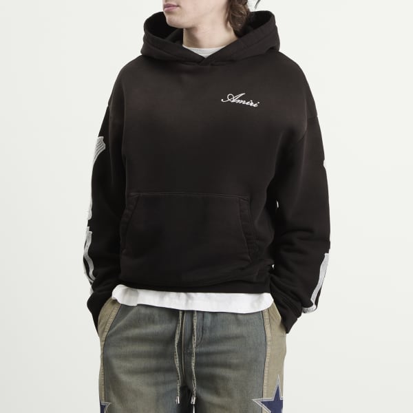 Худи AMIRI Bones Oversized - это переосмысление классического элемента уличной моды с фирменным роскошным стилем бренда, сочетающее смелый дизайн с повседневным комфортом. Изготовленная из высококачественного хлопка в свободном силуэте, она украшена вышитыми культовыми мотивами AMIRI в виде костей и дополнена логотипом, что делает ее эффектным элементом, воплощающим в себе уникальное сочетание высокой моды и непринужденного стиля бренда.