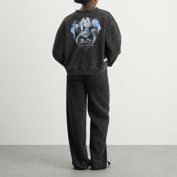 В честь долгожданного перезапуска сериала «Баффи - истребительница вампиров» adidas представил новую ностальгическую коллекцию, вдохновленную культовым сериалом 90-х годов. Этот уютный свитер с круглым вырезом сочетает в себе ретро-стиль и современный комфорт, отличается свободным силуэтом и смелыми графическими принтами из сериала на спине - обязательный элемент гардероба для поклонников, желающих стильно воплотить образ истребительницы вампиров.