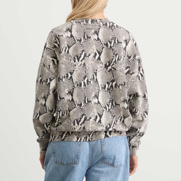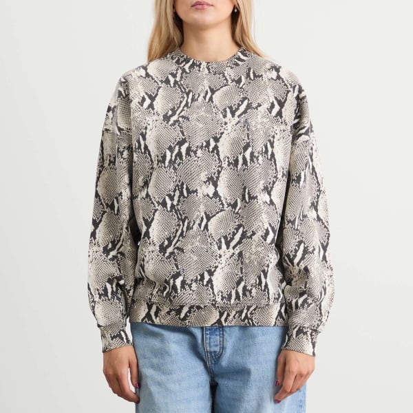 Anine Bing воплощает свое фирменное сочетание смелых принтов и повседневной роскоши в толстовке Miles, придавая классическому силуэту яркий сезонный оттенок. Эта объемная толстовка с круглым вырезом изготовлена из хлопкового флиса средней плотности и имеет ворсистую внутреннюю сторону для мягкости и уюта. Принт под змеиную кожу по всей поверхности добавляет современный штрих, превращая повседневную вещь в эффектный акцент.