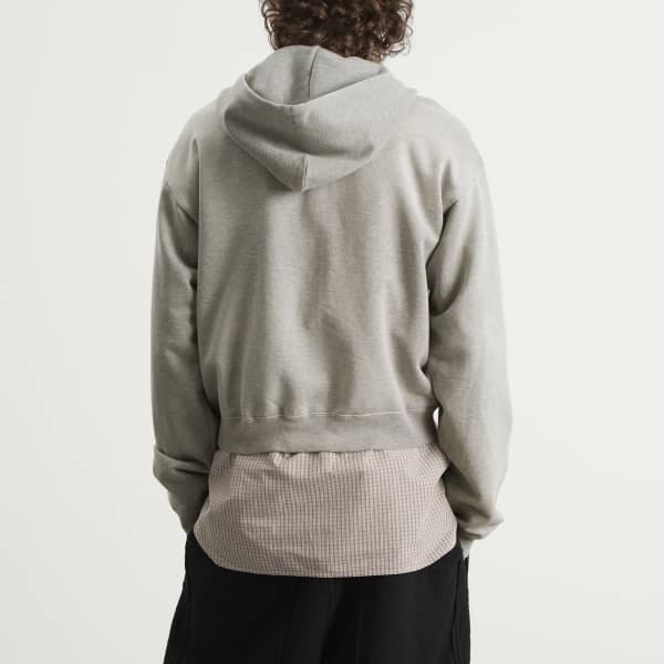Токийская компания Auralee стремится раздвигать границы базовых вещей, используя натуральные текстуры и высококачественные ткани, как, например, эта толстовка на молнии, в которой ультрадлинноволокнистый хлопок пима сочетается с эластичной пряжей. Поверхность отличается изысканной гладкостью, а подкладка обеспечивает легкую эластичность, достигаемую благодаря использованию винтажного оборудования, которое придает ткани ее характерный вид.