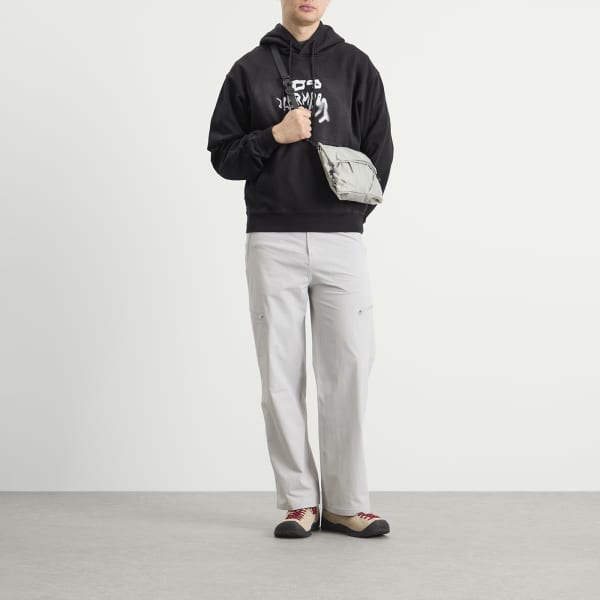 Худи Karma8a с логотипом, нанесенным мелом, передает необработанный след движения и усилий - словно пятно мела во время подъема. Изготовленная из плотного флиса с начесом и обработанная методом «стоунвош» для создания эффекта выцветшей ткани, она украшена смелым, размытым логотипом, который выглядит поношенным и выразительным. Свободный силуэт, приспущенные плечи и ребристые манжеты обеспечивают комфорт и поддержку.