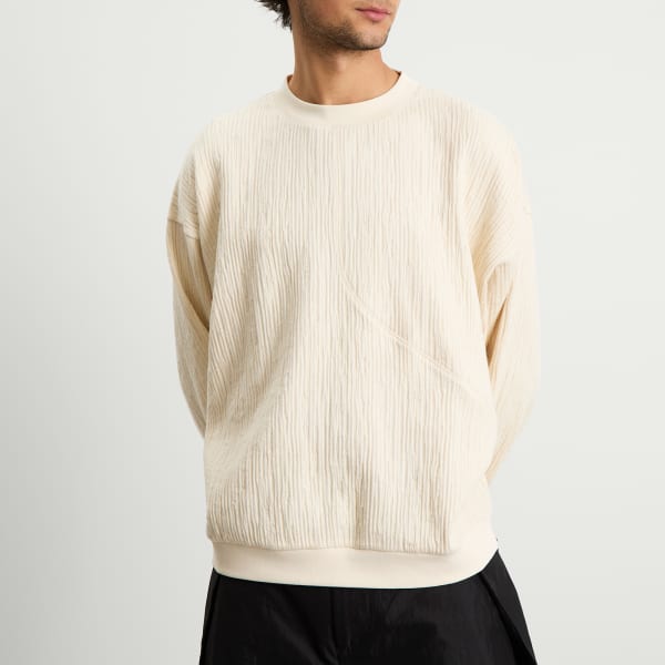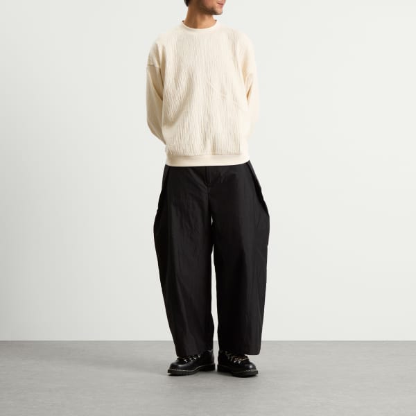 Мужская одежда от Gander не поддается классификации; это сочетание практичности и изысканности, силуэты, балансирующие между уличным и деловым стилем, и манчестерский колорит, который трудно не заметить. Вдохновленная лонгсливом Heaton из коллекции осень-зима 2024, модель Heaton Sweat выполнена из смеси хлопка и шерсти с текстурой, напоминающей кору дерева, и трехмерной глубиной. Это тактильная вещь, которая ощущается основательно - словно природа, воплощенная в ткани.