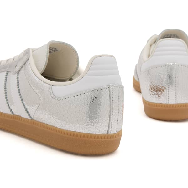 Известные своим сочетанием спортивного наследия и современного уличного стиля, кроссовки Samba OG от adidas переосмысливают культовую модель. Верх из серебристой потрескавшейся металлизированной кожи привлекает внимание, отсылая к футбольной культуре и одновременно являясь смелым модным заявлением. Фирменные зубчатые три полоски и логотип Trefoil отдают дань богатой истории adidas, а прочная резиновая подошва обеспечивает надежное сцепление. Кроссовки Samba OG сочетают в себе традиции и тренды, предлагая вневременной стиль с современным акцентом.