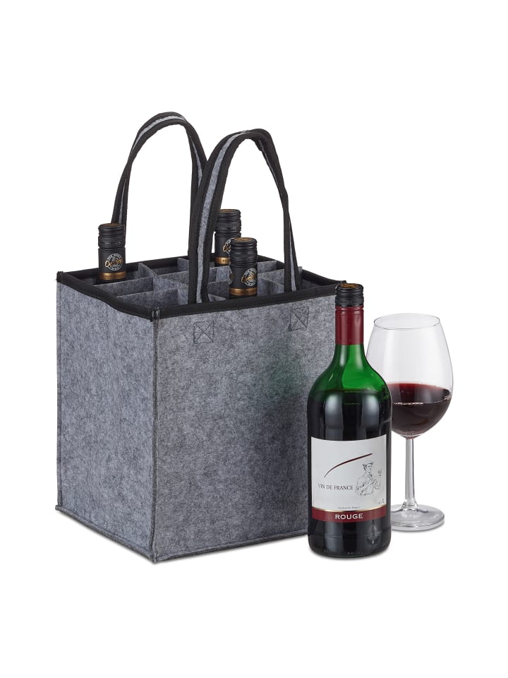 Эта сумка для бутылок позволяет легко перевозить до 9 бутылок одновременно, будь то пикник в парке или возвращение домой после шопинга. Она идеально подходит для стандартных винных бутылок, но также вмещает пиво, воду и многое другое. Когда сумка не используется для транспортировки, она служит идеальным контейнером для пустых бутылок и банок. Разделители из войлока толщиной 3 мм предотвращают поломку бутылок - без них сумка для вина превращается в обычную сумку для покупок.