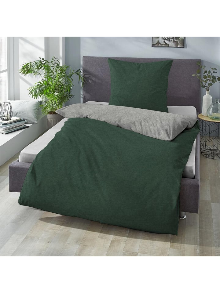 Traumschlaf Постельное белье Uni Melange темно-зеленого цвета