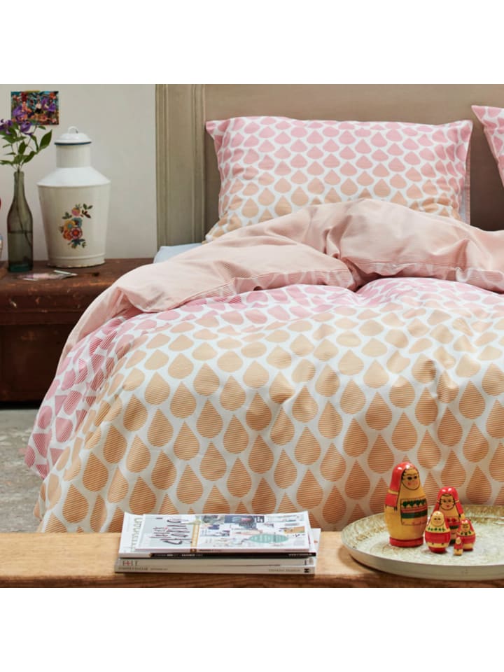 С комплектом постельного белья Rainns от Esprit вы можете привнести в свою спальню чудесный теплый летний дождь. Нежные капельки воды различных оттенков розового и оранжевого создают уютную атмосферу, в которой вы легко сможете забыть о стрессах повседневной жизни. Светлая обратная сторона идеально гармонирует с лицевой стороной этого двустороннего комплекта, обеспечивая полное расслабление! Укутайтесь в гладкую и мягкую атласную поверхность и наслаждайтесь комфортным и спокойным сном. Для сохранения качества цвета яркие вещи следует стирать при температуре, указанной на этикетке, в течение первых нескольких стирок. Декоративные предметы на изображении в комплект не входят. Различные настройки экрана могут вызывать небольшие цветовые вариации по сравнению с оригинальным продуктом. Материал: 100% хлопок
