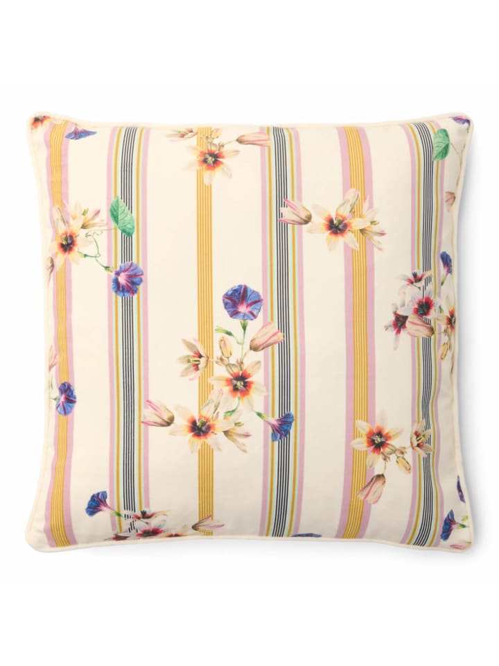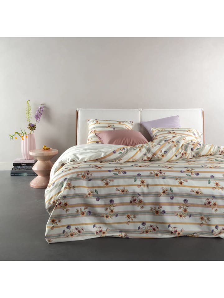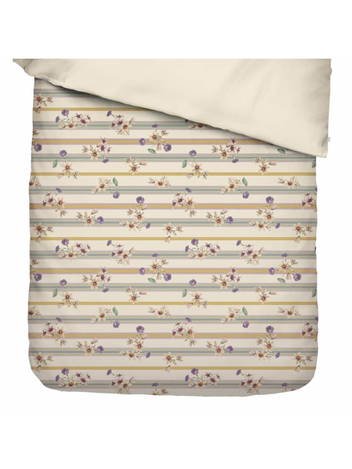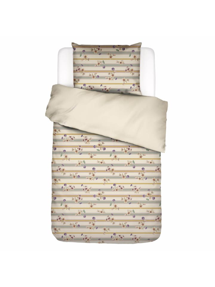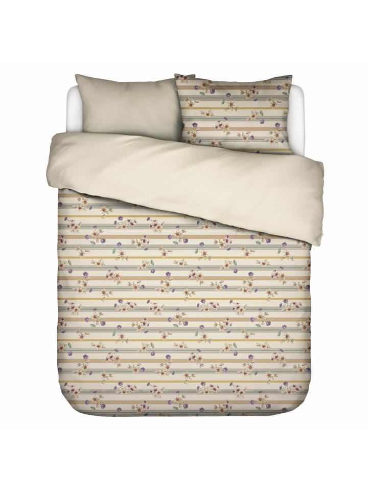 Комплект постельного белья Amare украсит вашу спальню исключительным дизайном. Игривые цветочные букеты, искусно вписанные в полосатый узор, украшают комплект в нежном ванильном оттенке, придавая ему очаровательный, свежий вид. Цветочные мотивы и полосы представлены в нежных оттенках желтого, синего и фиолетового - гармоничное сочетание цветов, излучающее легкость и жизнерадостность. Обратная сторона комплекта впечатляет своей сдержанной элегантностью в нежном ванильном цвете. Укутайтесь в мягкую, эластичную атласную поверхность и наслаждайтесь максимальным комфортом во время сна.