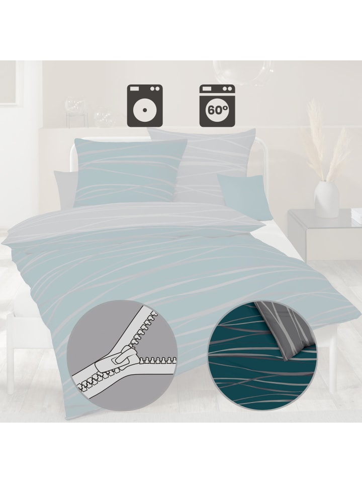 Двустороннее постельное белье Kaeppel из тонкой фланели "Motion". Этот современный дизайн с волнистым принтом по всей поверхности излучает свежесть и яркость. В холодное время года бархатистый, начесанный ворс обеспечит уют и тепло. Чистое удовольствие от объятий, ведь ткань, регулирующая температуру, исключительно мягкая на ощупь, приятная для кожи, дышащая и эластичная. За ней также легко ухаживать, она требует минимальной глажки и легко надевается благодаря застежке-молнии. Характеристики товара: - Двустороннее постельное белье - Полосатый дизайн - Графический принт - С фирменной молнией - Материал: - 100% хлопок (BW) - Инструкции по стирке: - Стирать при 60°C - Не отбеливать - Сушить в сушилке при низкой температуре - Гладить при средней температуре - Не подвергать химчистке - Двустороннее постельное белье - Полосатый дизайн - Графический принт - С фирменной молнией - Материал: 100% хлопок - Стирать при 60°C, сушить в сушилке при низкой температуре, гладить при средней температуре - Материал: 100% хлопок