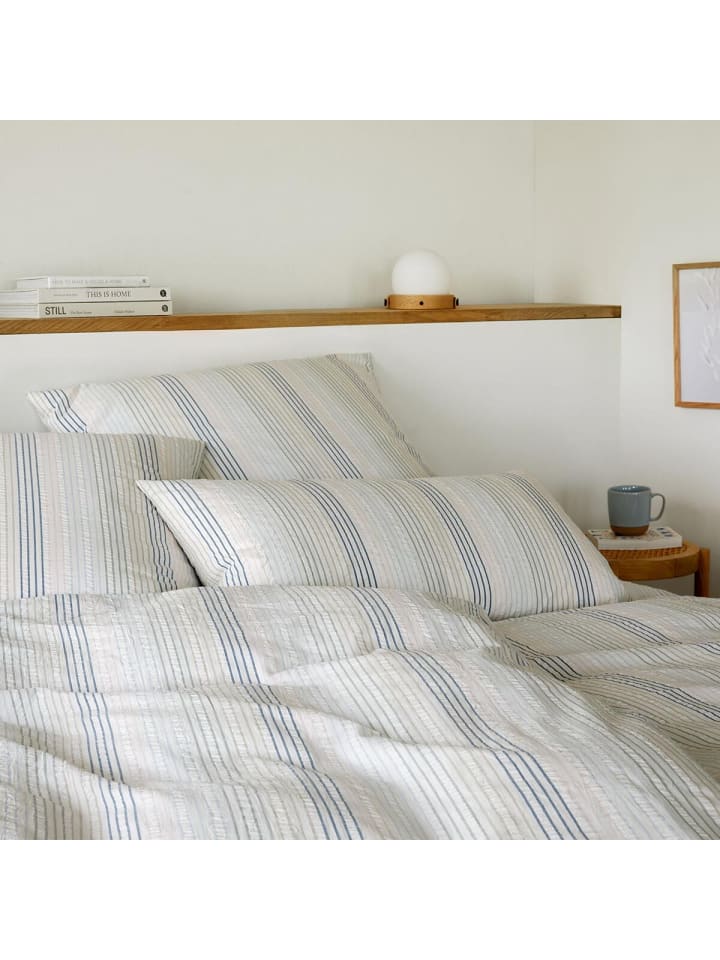 Изготовленное из чистого хлопка с приятными мягкими мятыми полосками, это мягкое постельное белье обеспечивает оптимальную циркуляцию воздуха.