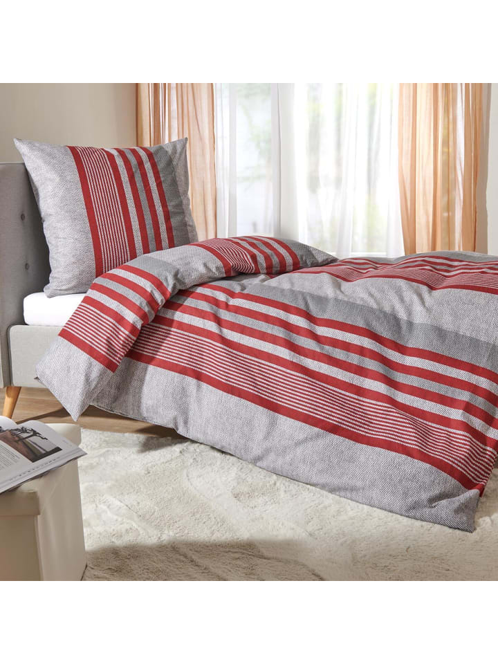 Traumschlaf Постельное белье Mountain Stripe Berry красного цвета