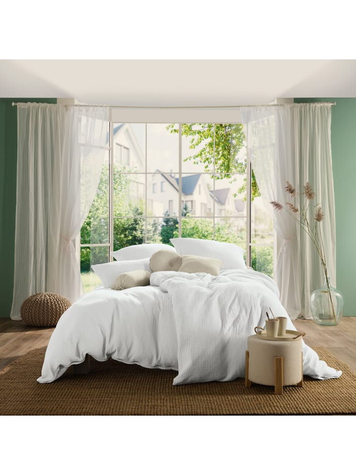 Муслиновое постельное белье Erwin Müller "Himmelkron". Предпочитаете минималистичный стиль? Тогда вам понравится это однотонное постельное белье, которое легко впишется в любой интерьер. Муслин изготовлен с использованием специальной техники плетения, при которой нити свободно переплетаются. Это создает его приятную на ощупь мягкость и воздушность. Современная мятая текстура создана специально, чтобы выглядеть слегка негладкой. Эта текстура позволяет ткани мягко облегать кожу, обеспечивая циркуляцию воздуха. Муслин также обладает высокой воздухопроницаемостью, быстро отводит влагу и обеспечивает приятную сухость во время сна, даже в теплые летние ночи. Это уютное постельное белье - отличный выбор как для лета, так и для зимы; оно приятно для кожи, не мнется и долговечно. Легко менять благодаря застежке-молнии. Из-за материала это постельное белье может быть немного большемерным. Характерный мягкий мятый эффект полностью проявится после первой стирки. Характеристики товара: - Серия Himmelkron - Однотонный дизайн - Качество: муслин - С фирменной молнией - Не требует глажки - Материал: 100% хлопок (BW) - Инструкции по стирке: - Стирать при 60°C - Не отбеливать - Сушить в сушилке при низкой температуре - Не гладить - Не подвергать химчистке - Серия Himmelkron - Однотонный дизайн - С фирменной молнией - Не требует глажки - Материал: 100% хлопок - Стирать при 60°C, сушить в сушилке при низкой температуре, не гладить - Материал: 100% хлопок