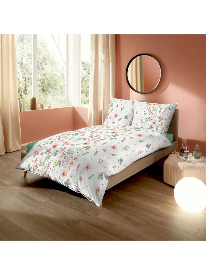 Мягкое постельное белье с нежными мятыми полосками действительно уютно и идеально подходит для того, чтобы в нем уютно устроиться. Материал впечатляет: дышащий, простой в уходе и терморегулирующий хлопок. Его воздушный дизайн делает его идеальным для лета. Мятая ткань не прилегает непосредственно к коже, что придает ей особую легкость. Более 15 лет Хольгер Генкингер и его команда специализируются на производстве и распространении постельного белья. Опираясь на свои знания и многолетний опыт работы в тесном сотрудничестве с клиентами, BettwarenShop разработала продукцию под собственной торговой маркой Traumschlaf (Dream Sleep). Особенности: - воздушное, легкое постельное белье - практичная застежка-молния - цветочный, летний дизайн - дышащий и приятно мягкий - машинная стирка при температуре до 60°C и сушка в сушильной машине. Материал: 100% хлопок