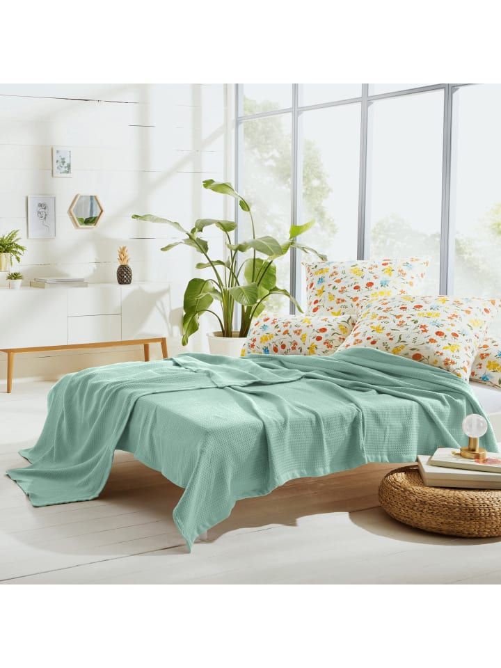 Erwin Müller Хлопковое летнее одеяло «Сиена» цвета шалфея