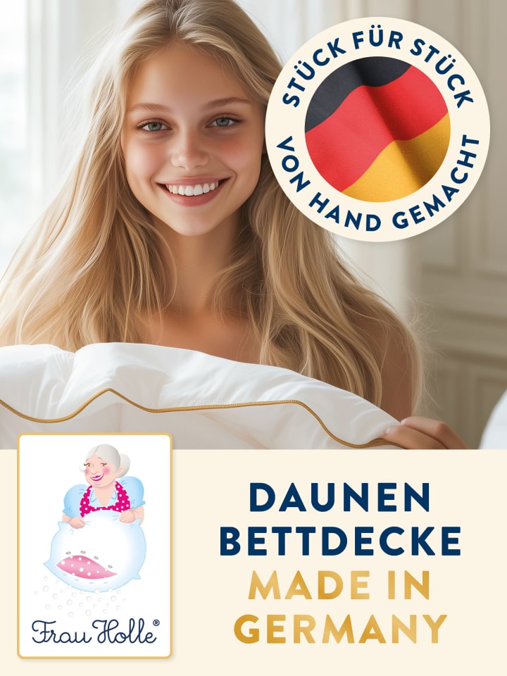 - Лучший немецкий пух мако: дышащий, исключительно тонкий хлопковый чехол для приятного ощущения на коже, с высококачественной золотой окантовкой.