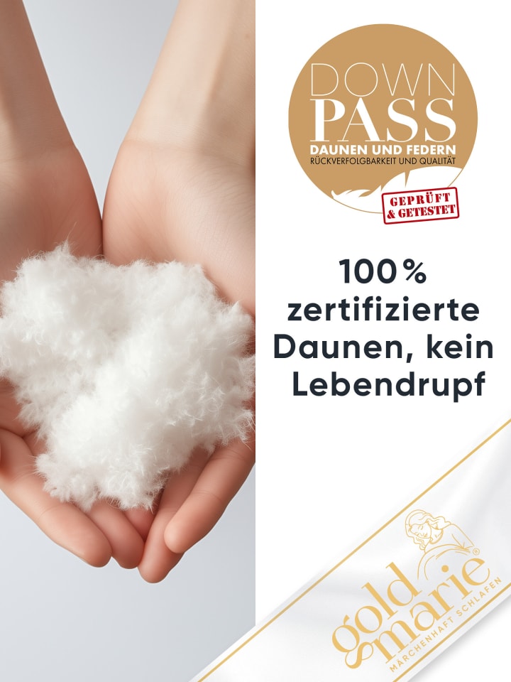 - Натуральный и экологичный - гусиный пух, сертифицированный DOWNPASS, полученный в результате этичного животноводства, гарантированно без ощипывания живых животных.