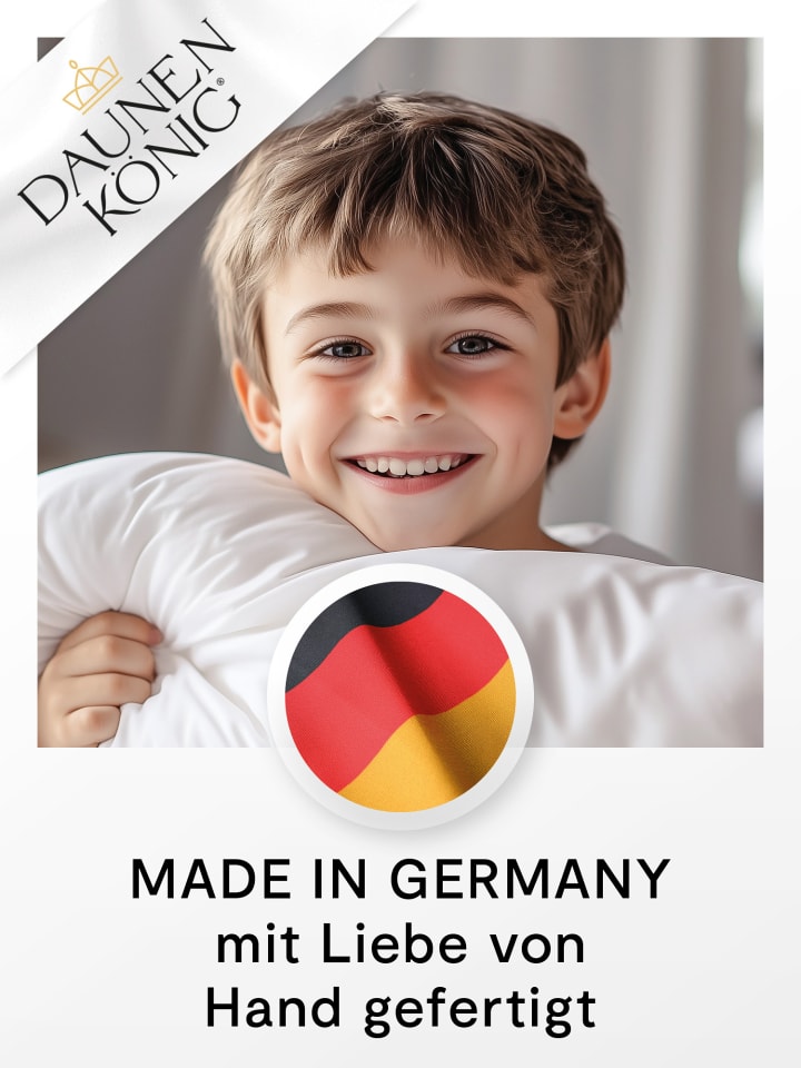 DAUNENKÖNIG - это немецкое мастерство и использование изысканных материалов - как для чехла, так и для наполнителя. Каждое изделие с любовью изготавливается вручную в Германии - это настоящий продукт «Сделано в Германии». Пуховое одеяло наполнено 70% гусиным пухом класса 1 и 30% гусиными перьями. Сертифицированный DOWNPASS пух получен из гуманного обращения с животными и никогда не добывается путем ощипывания живых животных. Чехол пухового одеяла изготовлен из 100% хлопка тонкой батисты Mako. Используемые ткани прошли тестирование на наличие вредных веществ и сертифицированы по известному стандарту Oeko-Tex Standard 100. Благодаря пухонепроницаемой ткани, чехлы не только «не пропускают пух», но и предотвращают проникновение домашней пыли, клещей и насекомых.