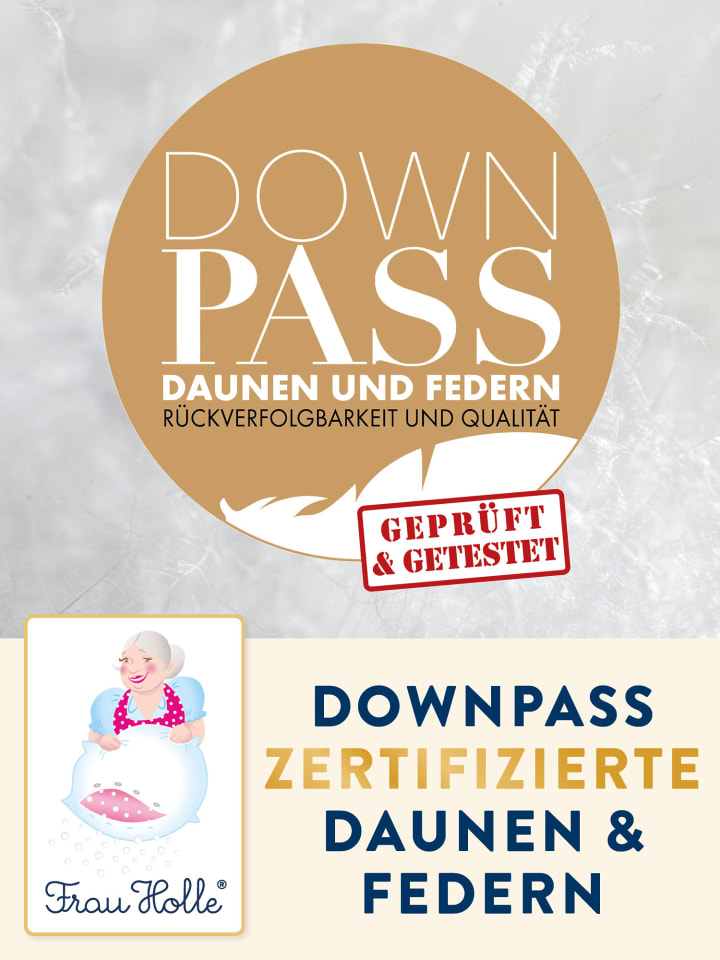 - Сертифицировано DOWNPASS: немецкий гусиный пух, полученный в гуманных условиях от животных, без ощипывания живых особей.