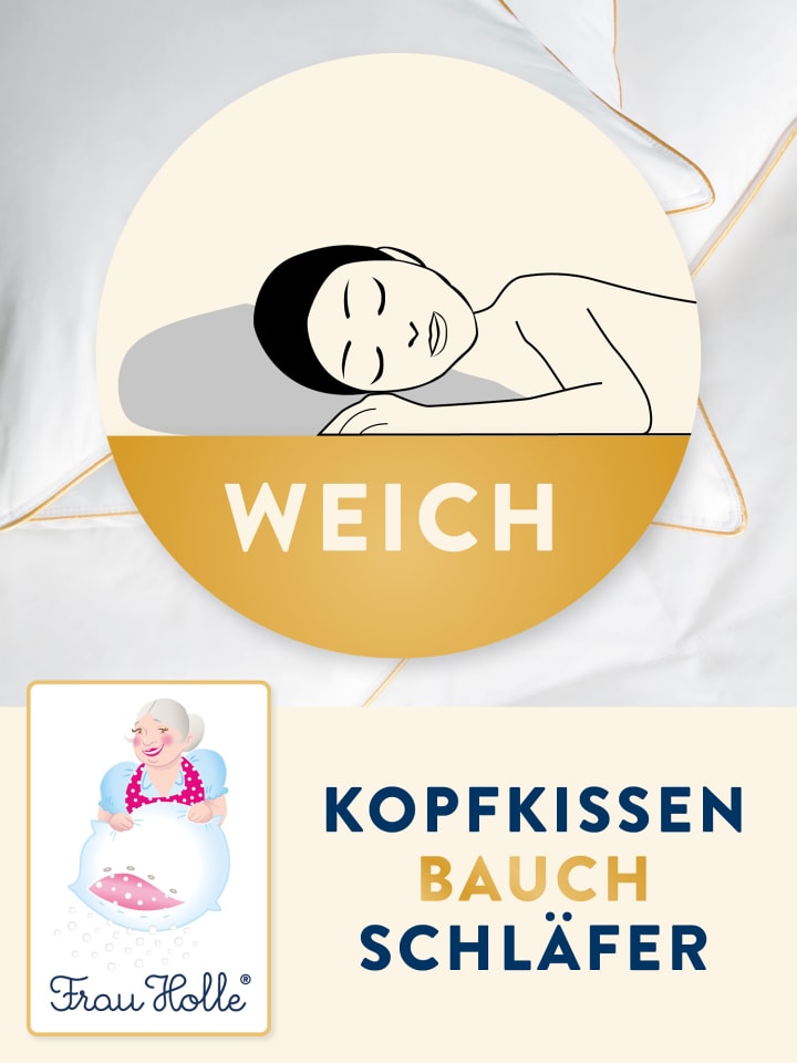 Пуховая подушка Frau Holle PRESTIGE "SOFT" - нежная и идеально подходит для тех, кто спит на животе