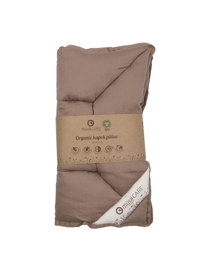 Подушка Kapock Muesli изготовлена из чистых органических растительных волокон и идеально подходит для тех, кто ищет натуральную, гипоаллергенную поверхность для сна. Как чехол, изготовленный из 100% органического хлопка, сертифицированного по стандарту GOTS, так и наполнитель, состоящий из 100% органического волокна капока, гарантируют высочайшее качество и экологичность. Капок - получаемый из семенных коробочек дерева капока - это очень особенное волокно: оно полое, на 80% состоит из воздуха и поэтому является одним из самых легких натуральных волокон в мире. Это делает подушку не только приятно легкой, но и обеспечивает отличную теплоизоляцию - воздушную и свежую летом и комфортно теплую зимой. Волокно капока обладает естественными влагоотталкивающими свойствами и поэтому остается сухим, не намокая и не плесневея. Это надежно защищает от пылевых клещей и обеспечивает гигиеничную и здоровую среду для сна - идеально для аллергиков. Преимущества вкратце: 100% органические растительные волокна, естественная устойчивость к клещам, воздухопроницаемость и терморегуляция, машинная стирка, приятная легкость и мягкость. Подушка размером 45x40 см идеально подходит для взрослых и детей от 18 месяцев и старше. Однако она не рекомендуется для младенцев младше 18 месяцев. Всегда следите за тем, чтобы лицо ребенка оставалось открытым и не перегревалось. Инструкция по уходу: Стирайте подушку только при необходимости, желательно отдельно, при температуре 40°C с использованием экологически чистого моющего средства без ферментов и отбеливателя. Не используйте кондиционер для белья. После стирки отожмите подушку со скоростью 1200 об/мин. Затем поместите ее непосредственно в сушилку - желательно с шариками для сушки, чтобы наполнитель равномерно распределился. Повторяйте процесс сушки на средней температуре, пока подушка не станет лишь слегка влажной. Наконец, дайте ей полностью высохнуть на воздухе. Важно: Держите подушку подальше от открытого огня. Не используйте, если она повреждена. Всегда следите за правильной температурой в помещении и одеждой, чтобы избежать перегрева. Соответствует стандарту GOTS. Сертифицировано Ecocert Greenlife, лицензия № 151714. Данный продукт имеет органический сертификат GOTS. В настоящее время это самый высокий стандарт для одежды. Все производственные процессы, такие как окрашивание, ткачество и пошив, осуществляются в соответствии со строжайшими правилами с уважением к окружающей среде. Условия труда также строго контролируются на каждом этапе производства. Капок 59%, хлопок 41%