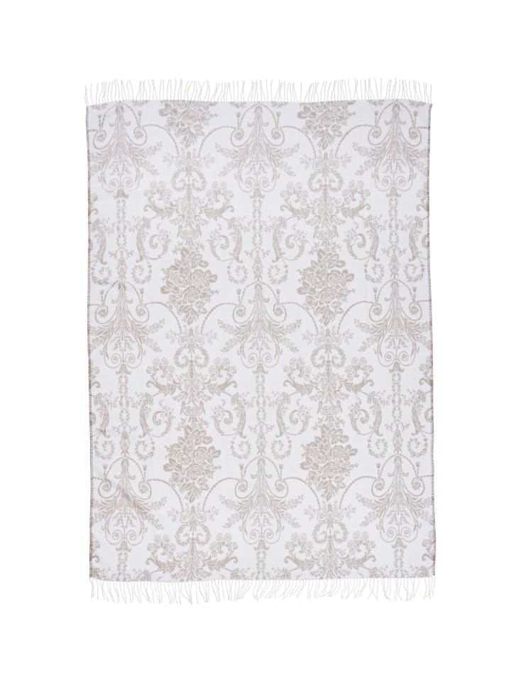 Плед с красивой бахромой и стильным декоративным узором для уютного дома. Плотностью 320 г/м², этот плед идеально подходит для того, чтобы уютно устроиться вечером. Он невероятно мягкий и теплый благодаря высокому содержанию высококачественного полиакрила. Натуральный хлопок делает плед дышащим и нежным для кожи. Характеристики: Плед, очень мягкий благодаря высокому содержанию хлопка, высококачественная окантовка, машинная стирка при температуре до 30°C в щадящем режиме, современный дизайн. Материал: 58% хлопок, 32% полиакрил, 10% полиэстер