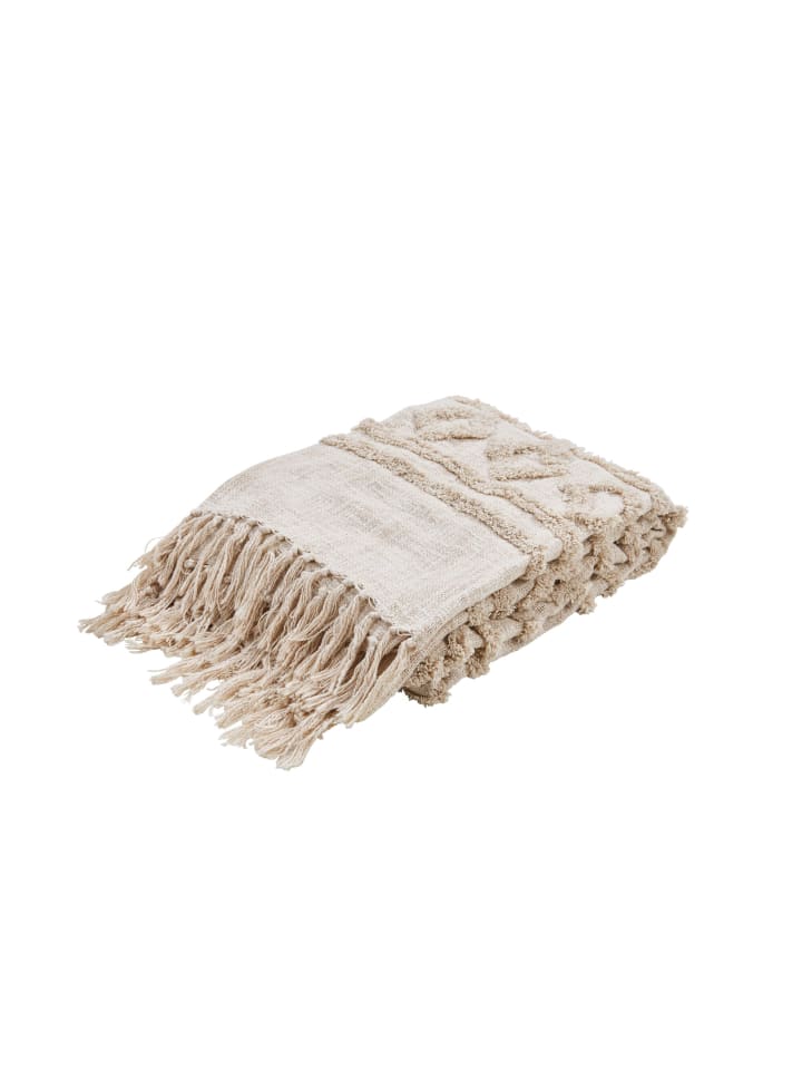 Этот уникальный плед в стиле бохо мгновенно создаст в вашем доме особую атмосферу. Изготовленный с тщательным вниманием к деталям, плед впечатляет своими роскошными ворсистыми мотивами на лицевой стороне и игривыми кисточками, придавая ему очаровательный вид ручной работы.