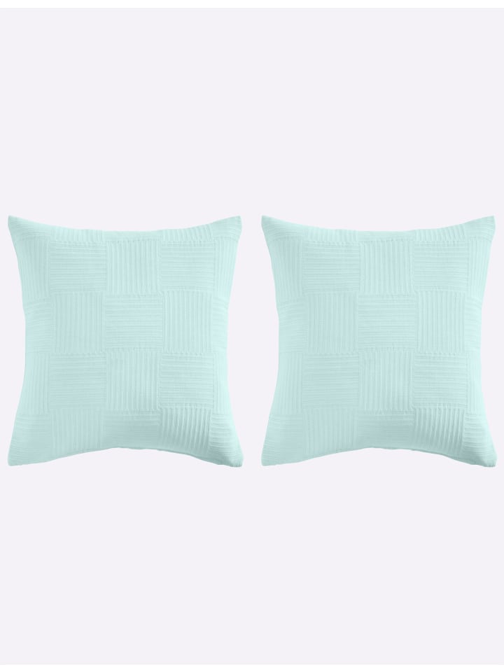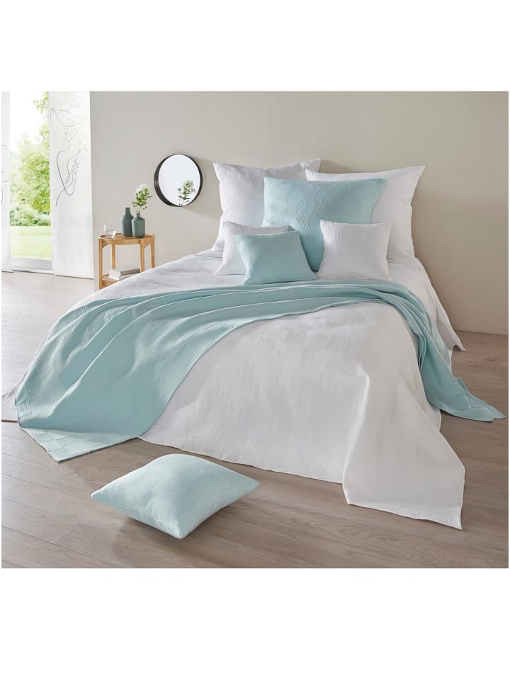 Покрывало с замысловатым жаккардовым узором в виде шахматной доски. Слегка уплотненное. Советы по правильному снятию мерок доступны онлайн. Наволочки на молнии.