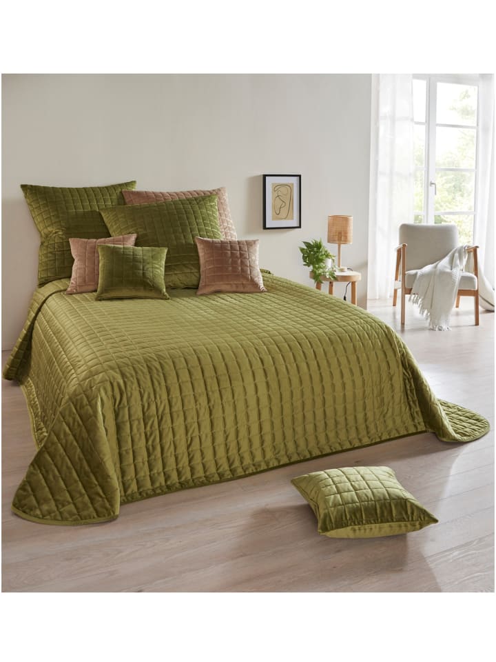 Покрывало: Приятно мягкое, с бархатистой текстурой, стеганым клетчатым узором и легким блеском. Слегка уплотненное. С закругленными углами и бархатной отделкой. Советы по правильному снятию мерок доступны онлайн. Наволочки со стеганым клетчатым узором спереди и однотонным бархатистым узором сзади. На молнии.