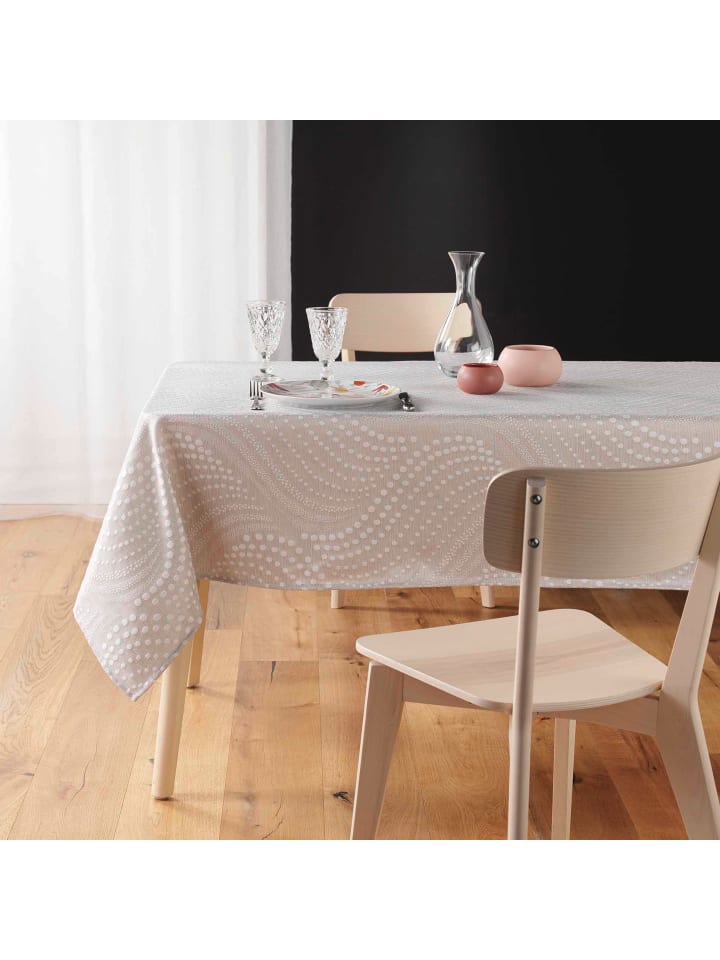 Простой дизайн: эта скатерть имеет классический дизайн, который дополнит любой интерьер. Геометрический узор из волнистых точек придает ей утонченный и элегантный вид.