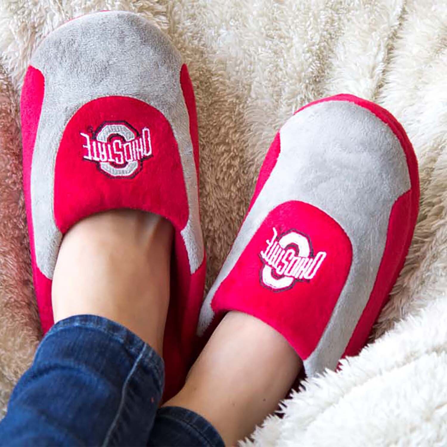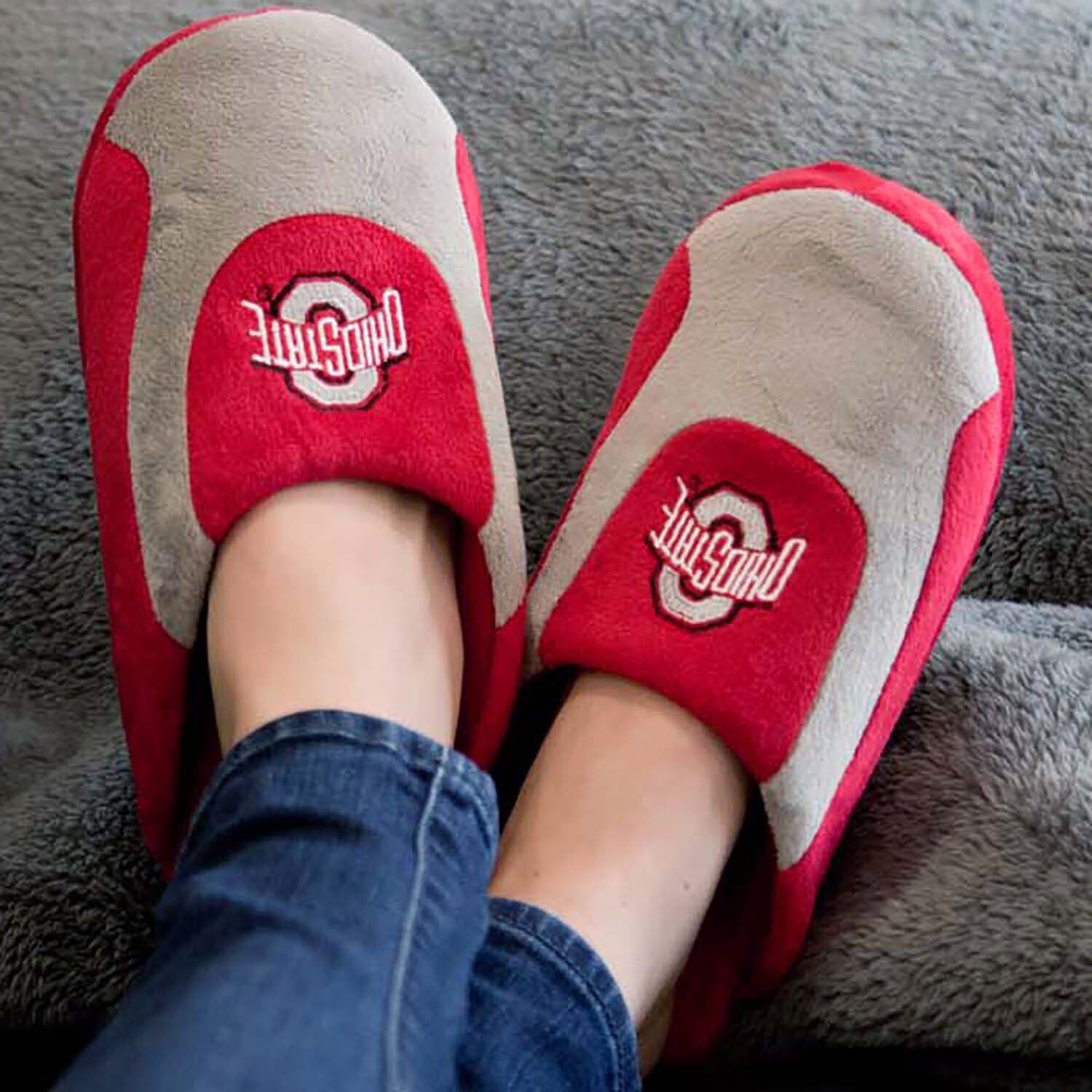 Сохраняйте тепло и уют, болеея за свою любимую команду NCAA, в этих слипонах Ohio State Buckeyes.