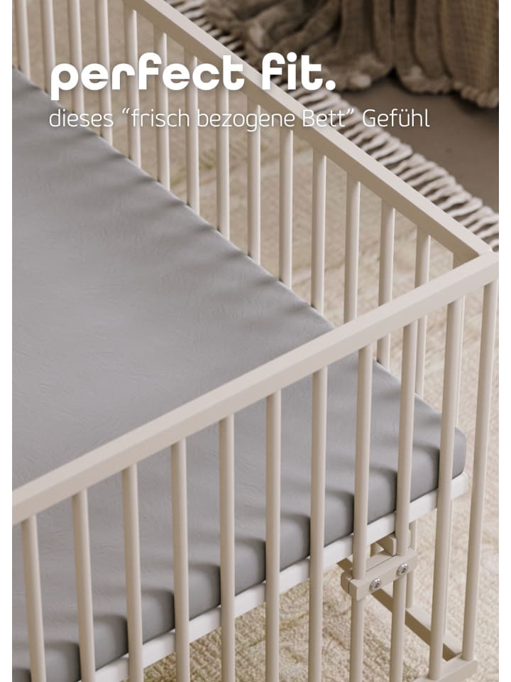 Идеальность без складок: Благодаря инновационной эластичной ленте наша простыня всегда остается без складок и идеально натянута на матрасе. Это создает безупречные условия для сна вашего маленького чуда.