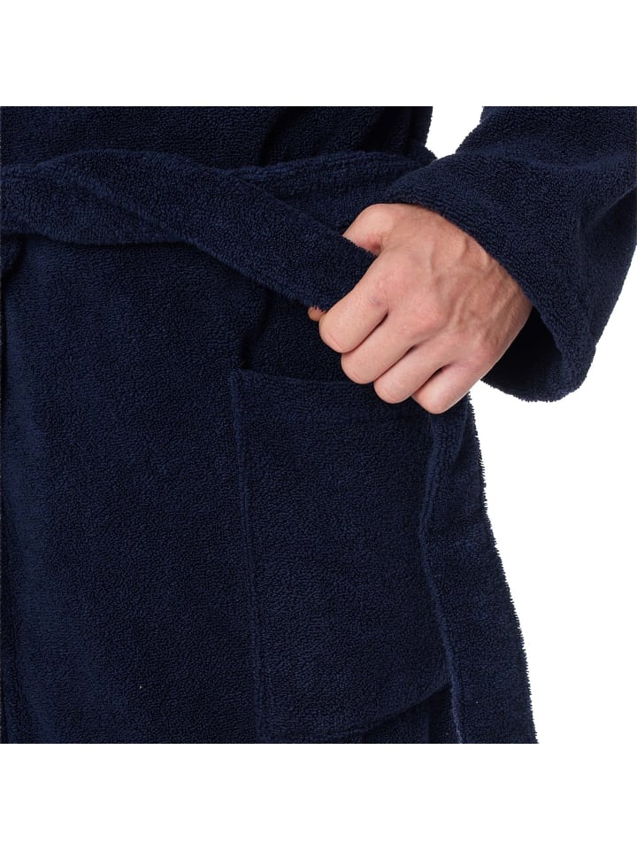 Мужской халат с капюшоном от SCHIESSER. Изготовлен из мягкой хлопковой махровой ткани, с накладными карманами и поясом. Высокое качество.