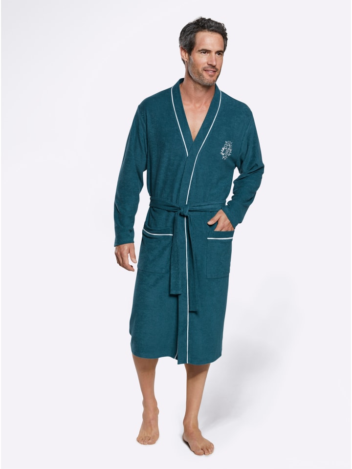Этот банный халат в модном стиле кимоно отличается элегантным видом благодаря контрастной окантовке. Он имеет два накладных кармана и вышитые элементы. Завершает образ пояс с петлями для ремня. Изготовлен из мягкой, легкой махровой ткани. Поддерживает инициативу «Хлопок, произведенный в Африке».