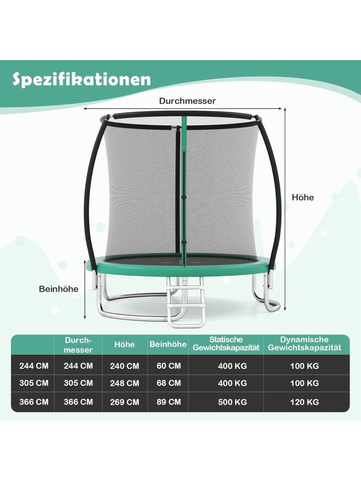 Costway Уличный батут Ø244 см с лестницей, зеленый