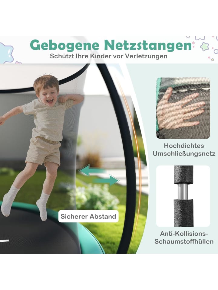 Описание: Конструкция, обеспечивающая безопасность, включает изогнутые опоры и бесшовное крепление сетки для предотвращения травм. Изогнутые трубки ножек повышают устойчивость, а прочные пружины и устойчивая к коррозии рама из оцинкованной стали гарантируют долговечность. Вы сможете наслаждаться высокими прыжками на нескользящем батутном полотне с износостойкой защитной сеткой. Лестница обеспечивает легкий доступ, а мягкий чехол для пружин повышает комфорт и безопасность прыжков.